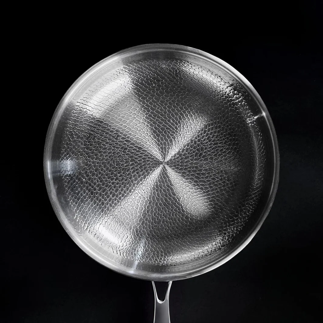 De mikroskopiska strukturerna minskar kontaktpunkterna mellan maten och pannan samt hjälper oljan att fördelas jämnt. Resultatet är att maten glider av istället för att fastna.