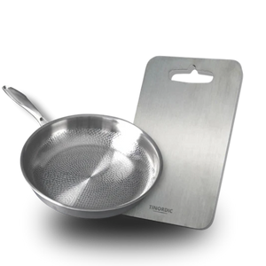Till skillnad från belagda pannor som kan förstöras i diskmaskin, påverkas inte ren titan alls. Materialet är icke-poröst, absorberar inte fett, lukt eller diskmedel och bryts inte ner. Handdisk eller diskmaskin – båda är helt säkra.